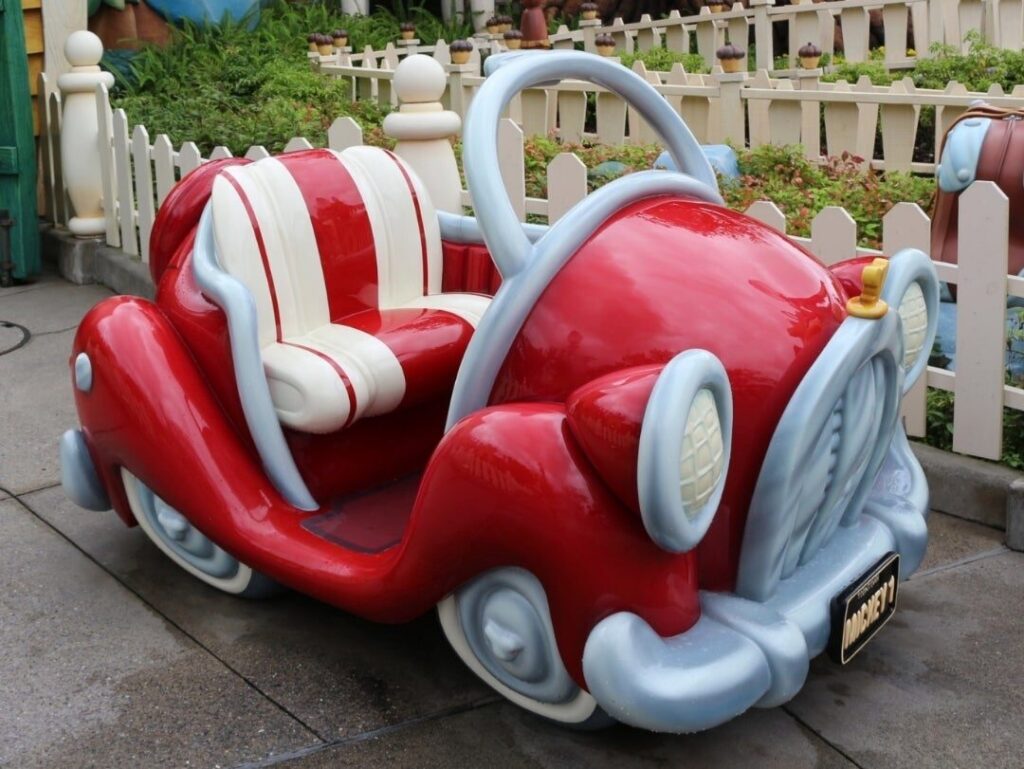 トゥーンタウンついてから、息子は車のオブジェクトを気に入ってしまい離れたがらない。
